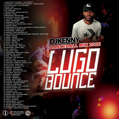 DJ KENNY LUGO BOUNCE DANCEHALL MIXFIX 2022 1. Lugo Lugo ft Guidance - Lugo Bounce 2. BigWayne ft Guidance,Boysie,Energy - Coming Money 3. Chi Ching Ching - Call the money 4. Teejay - Pro 5. Konshens - Broad out 6. QQ - Baccanal 7. Lincoln 3Dot - Sidung and Ride 8. ReniGad - Boom 9. Beenie Man - Ehh yah ooh 10. Cristale ft Laa Lee - Bong Bing 11. Papiluchi - Huligan vibes 12. Rema - Calm down 13. Demarco ft Spice - Jiggle 14. Vybz Kartel ft Shaneil Muir - Ride it 15. Squash - Ready 16. Mura Masa ft Pa Salieu, Skillibeng - Blessing me with 17. Beenie Man ft Amber - Wild 18. Vybz Kartel - Real galis 19. Ramone - Gyalis ina real life 20. Skillibeng ft Fivio Foreign, French Montana - Whap whap 21. Skeng - Canada 22. Skeng - London 23. Skeng - Limited edition 24. Daygo - Money step 25. Bayka - Top tier 26. Bayka - Real life killa 27. Chi Ching Ching - Look out 28. Ding Dong - Dong a ling 29. Zee - Look nice 30. Malie Don - Bank 31. Marksman ft Malie Don - Meech 32. Chronic Law - Up deh 33. Mr G - Yellow tape 34. Alozade - Chip chip dub 35. Laa Lee - Easy 36. Popcaan - Skeleton cartier 37. Popcaan ft Dane Ray, Jahshii - 1tec 38. Nitty Zulu - Bang e line 39. Jahvillani - La Vida loca 40. Masicka - Tom brady 41. Mavado - Thunderclap 42. Jahmiel - Gun pon top a Gun 43. I-Voltage - Pop style 44. Shane O - Murderer 45. Teejay - Headshot 46. Jahshii - Prosperity 47. Yaksta - God's convo 48. Chronic Law - Garrison above 49. Demarco - Nobody knows 50. Shane O - Dark room 51. African Blood - Can't stop we 52. Itadon - Bloody city 53. Wilfulskilful - Tables ago turn 54. Chezidek - Love 55. Yaksta - Wish you well 56. Chronic Law - Far from worst 57. Bobo Shabba - Mighty 58. Teflon - Sold out 59. Sahie - Celebrate 60. Fantan Mojah - Fall out 61. Teflon - Beggy beggy 62. Teflon - Dem wah drain 63. Breeza Sparta - Never drop the standard 64. KushGad - When we play games THIS MIXTAPE IS ONLY FOR PROMOTIONAL PURPOSE NO COPYRIGHT INTENDED.©